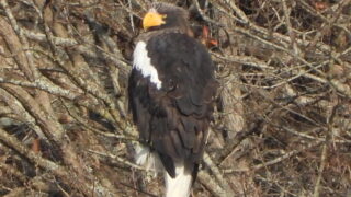 今日、知和ウェットランドで観察できた猛禽類はオオワシだけではありません。 オオワシと肩を並べる大型猛禽類、クマタカも見ることができました‼ クマタカは、オオワシがいなくなってしろうさが昼ご飯を食べている時にやって...