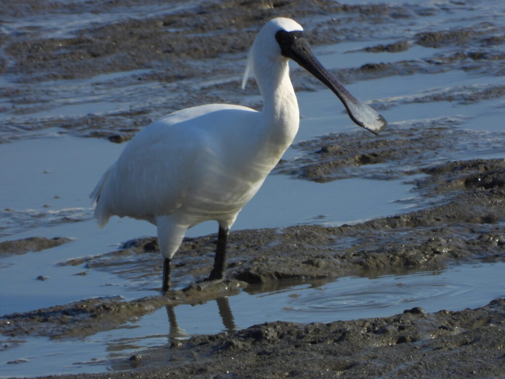 2日目は、有明海の荒尾干潟でクロツラヘラサギを観察しました!