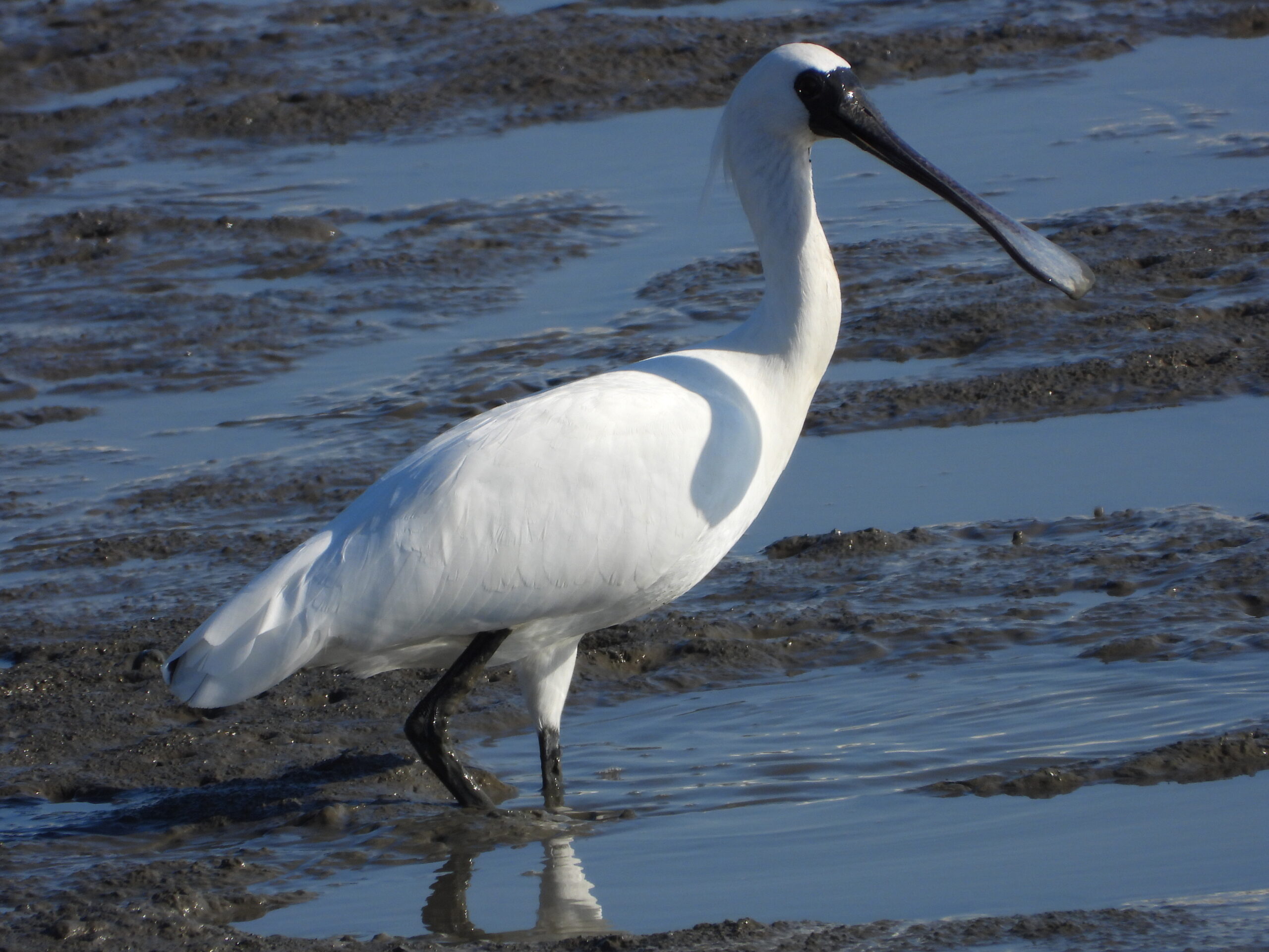 クロツラヘラサギは、1羽だけで遠くで餌をとっていました。