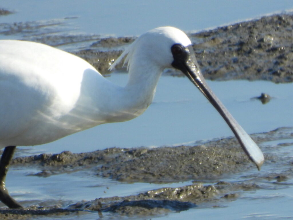 ヘラサギと違い、顔が黒く、目の位置が分かりにくい。